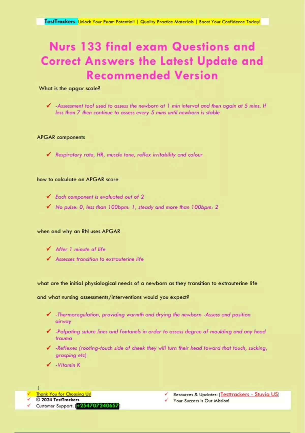 Nurs 133 final exam Questions and Correct Answers the Latest Update and Recommended Version