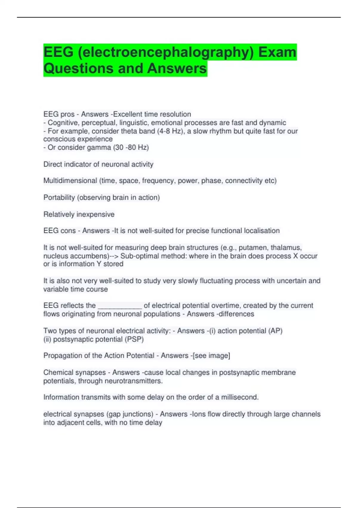 EEG cons - Answers -It is not well-suited for precise functional localisation