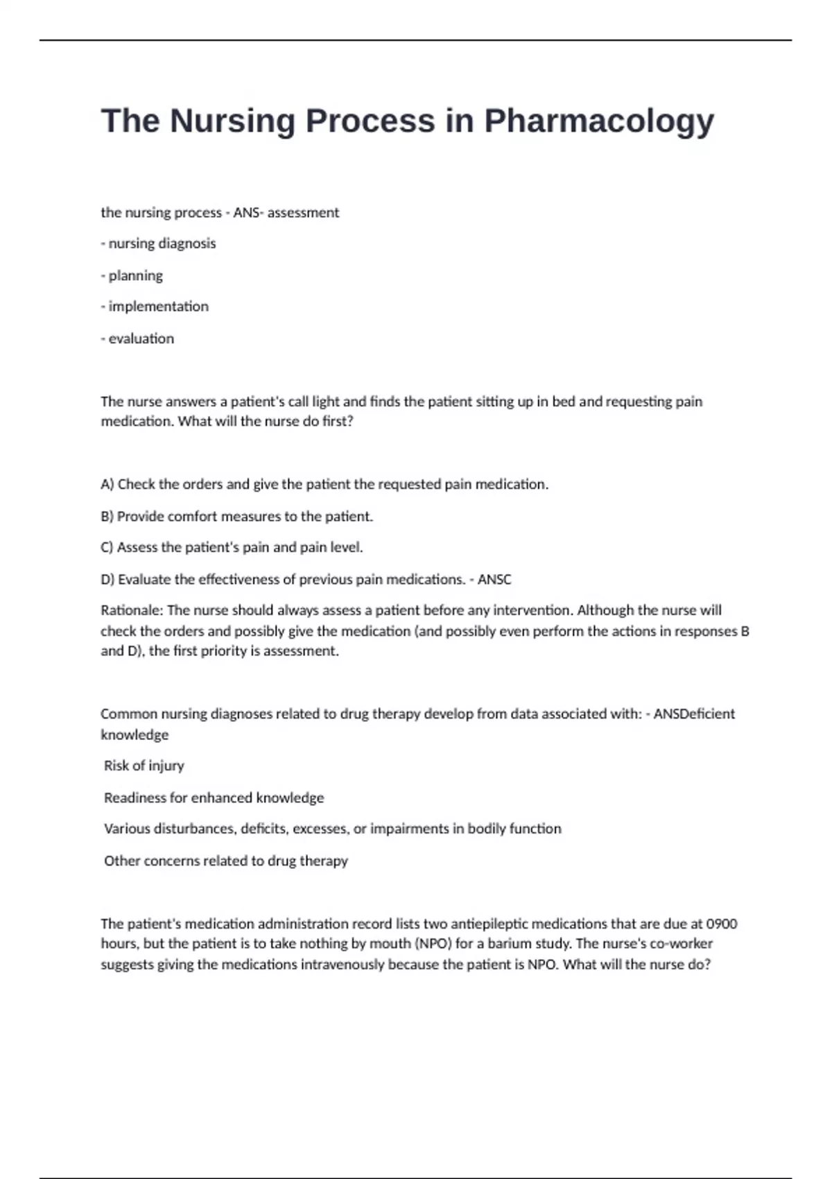 Rationale: The nurse should always assess a patient before any intervention. Although the nurse will