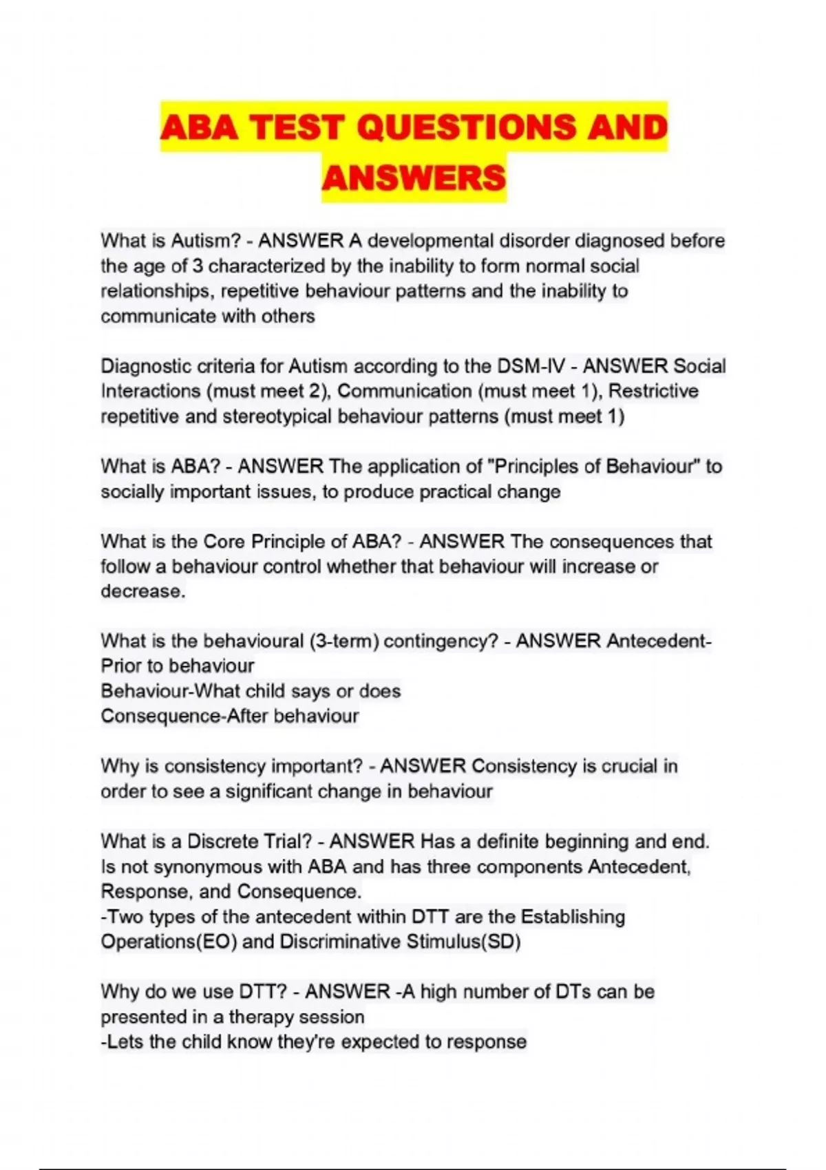 ABA TEST QUESTIONS AND ANSWERS...