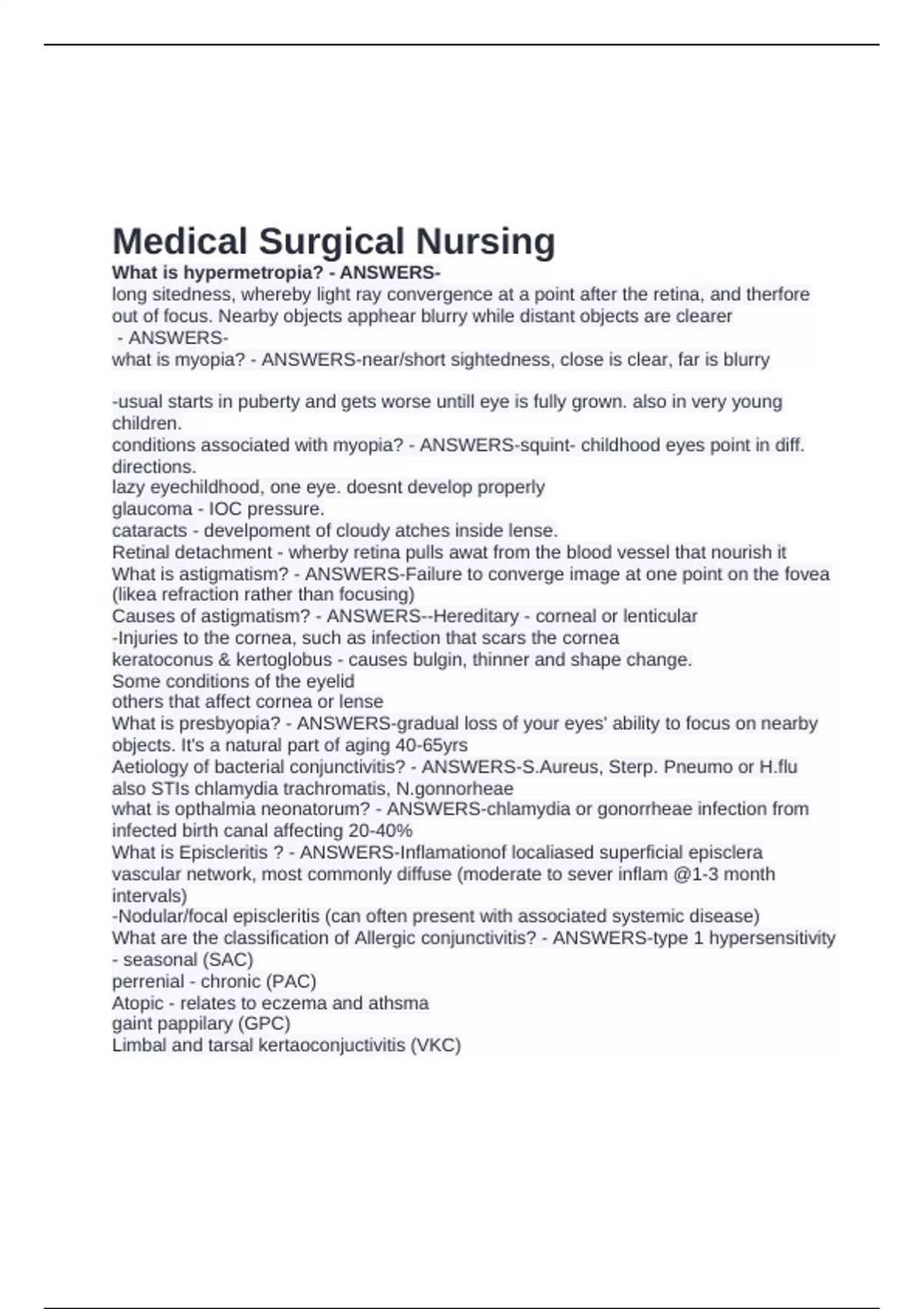 Medical Surgical Nursing
