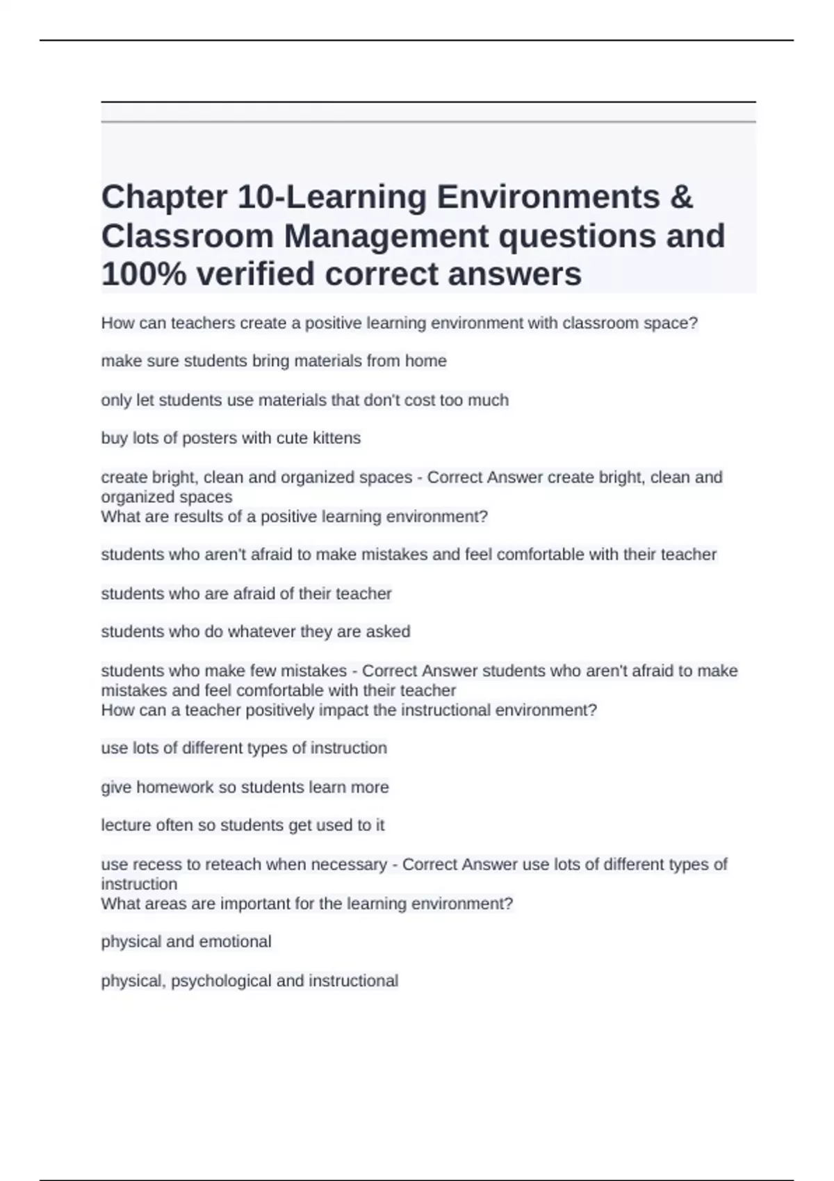 100% verified correct answers