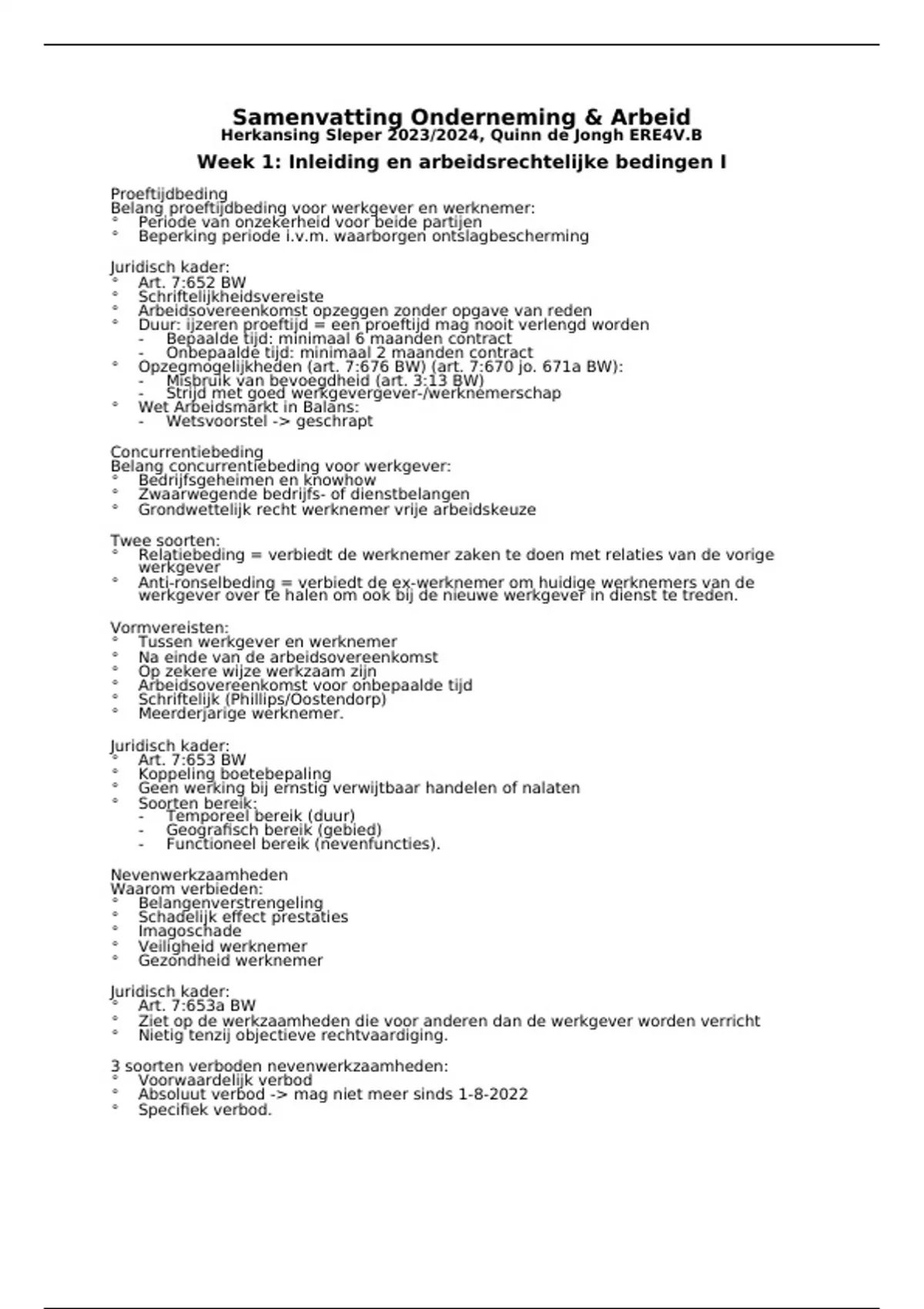 Week 1: Inleiding en arbeidsrechtelijke bedingen I