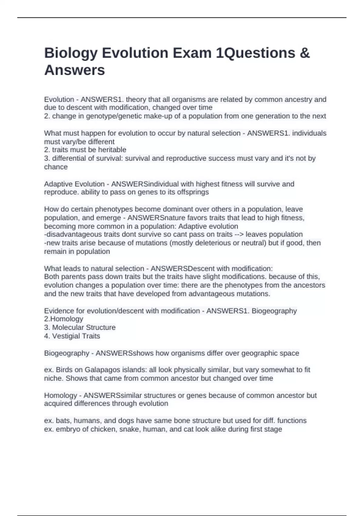 Evidence for evolution/descent with modification - ANSWERS1. Biogeography