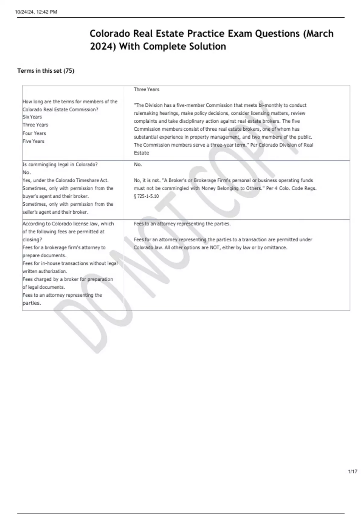, 10/24/24, 12:42 PM Colorado Real Estate Practice Exam Questions (March 2023) Flashcards | Quizlet
