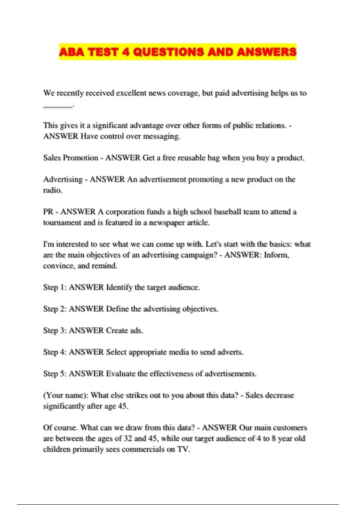 ABA TEST 4 QUESTIONS AND ANSWERS....