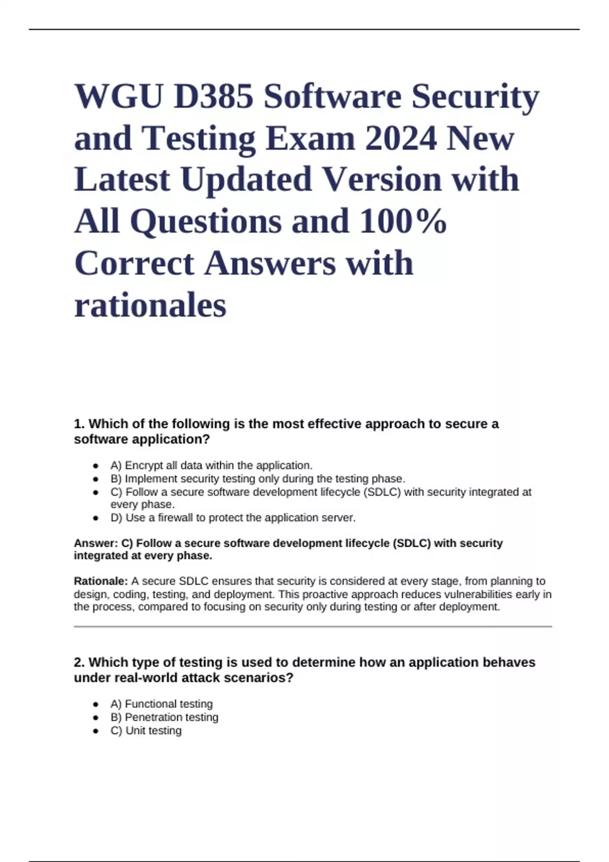 Rationale: A secure SDLC ensures that security is considered at every stage, from planning to