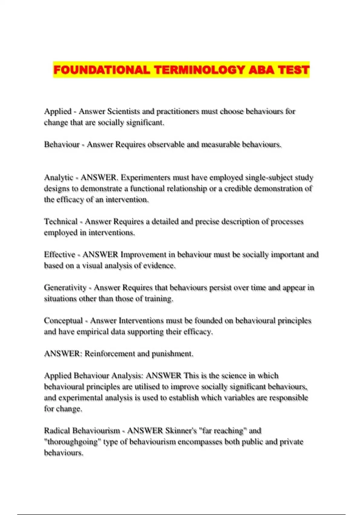 FOUNDATIONAL TERMINOLOGY ABA TEST