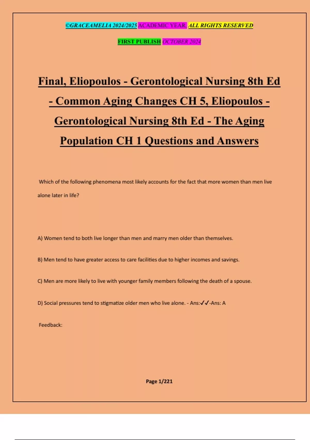 Final, Eliopoulos - Gerontological Nursing 8th Ed