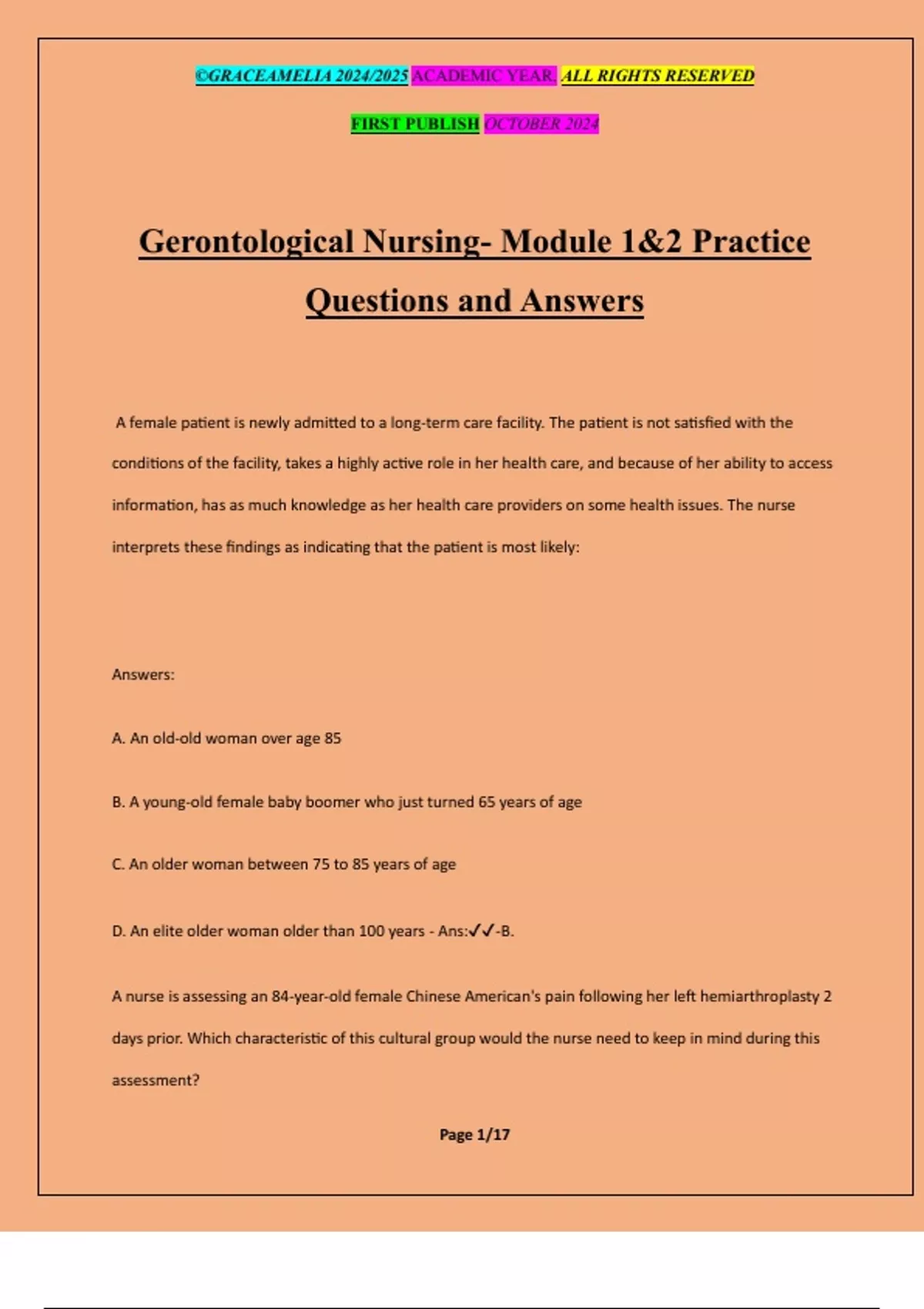 Gerontological Nursing- Module 1&2 Practice