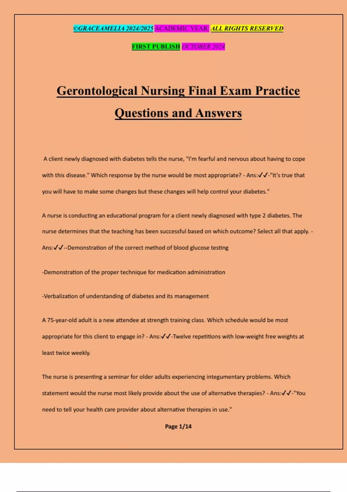 with this disease." Which response by the nurse would be most appropriate? - Ans:✔✔-"It's true that