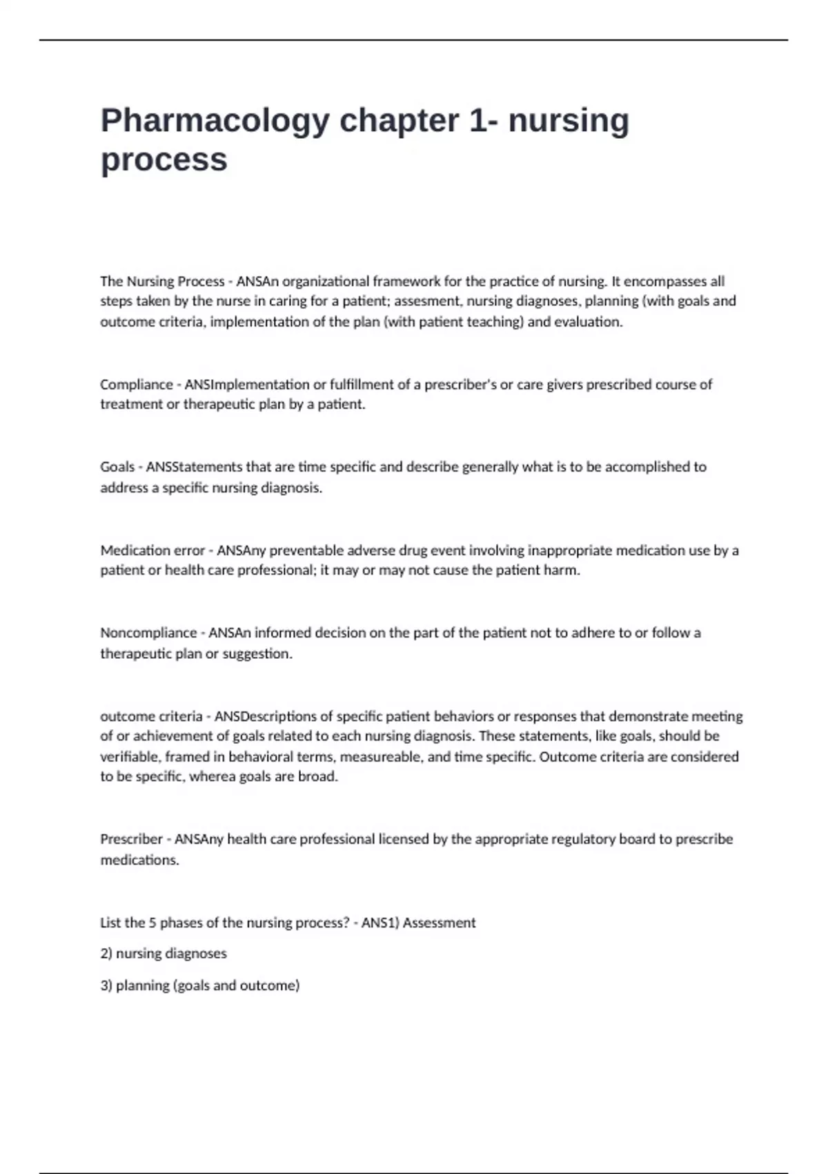 Pharmacology chapter 1- nursing process Verified Questions and Answers 2024/2025 Latest Edition.