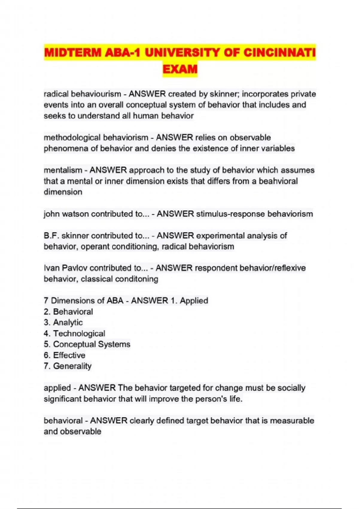 MIDTERM ABA-1 UNIVERSITY OF CINCINNATI EXAM...
