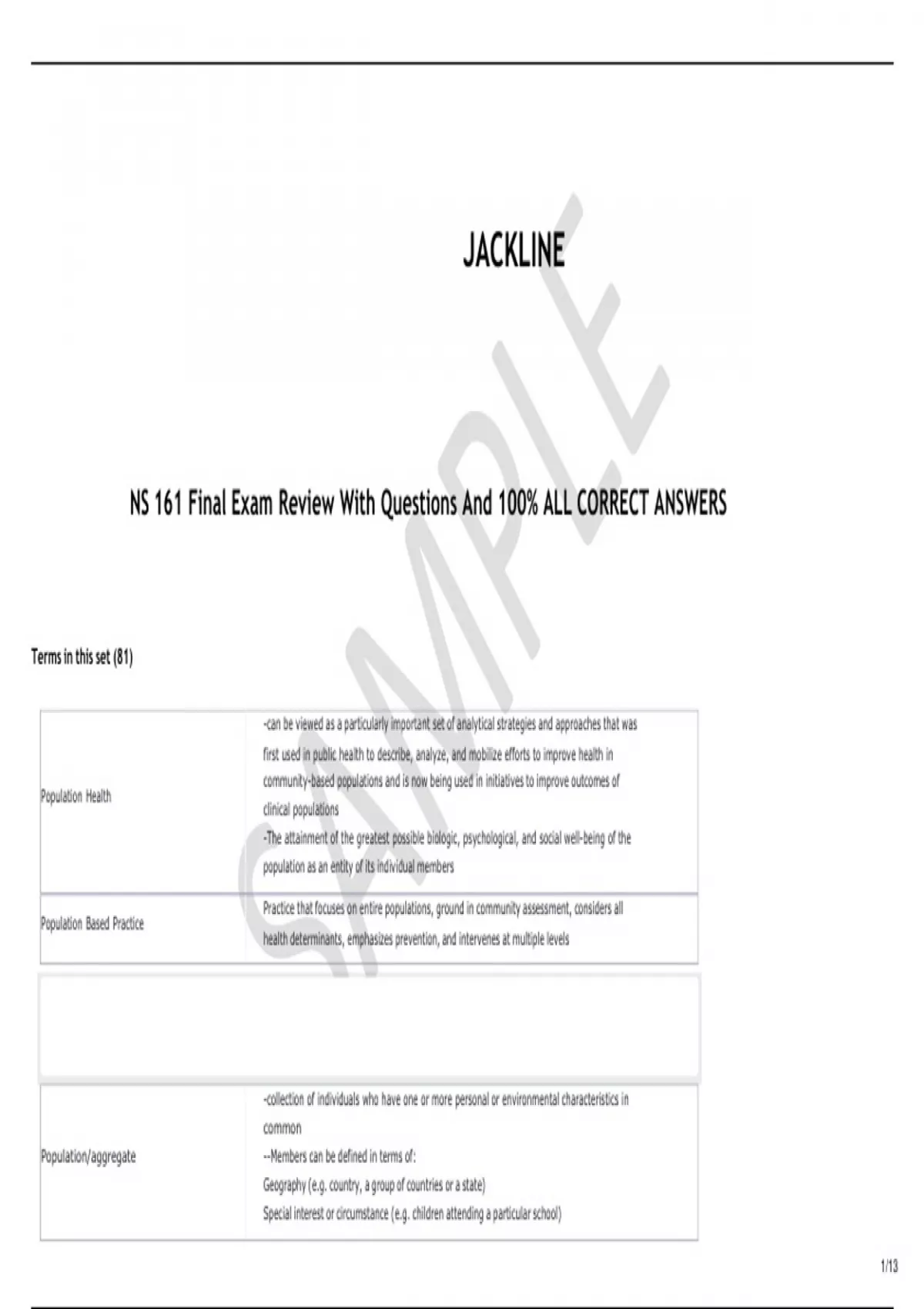 NS 161 – Final With 100% COMPREHENSIVE QUESTIONS AND ANSWERS GRADED A+