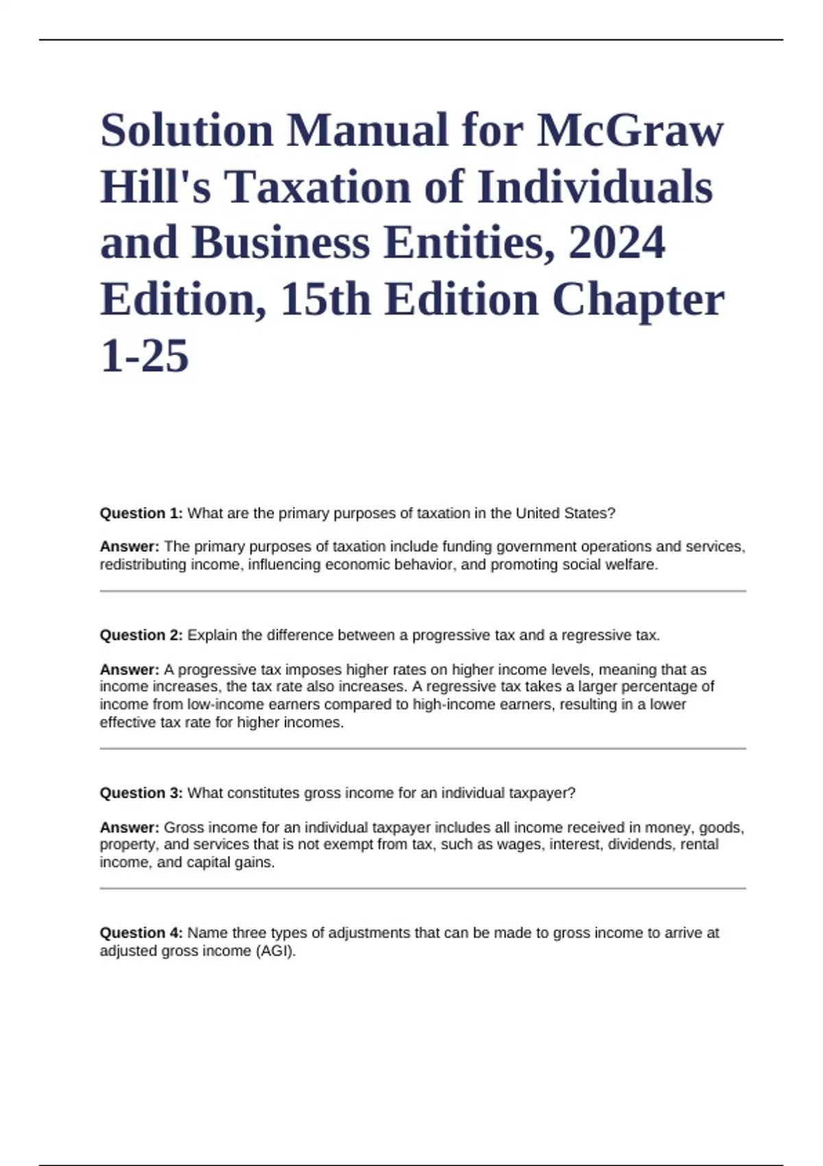 Question 3: What constitutes gross income for an individual taxpayer?