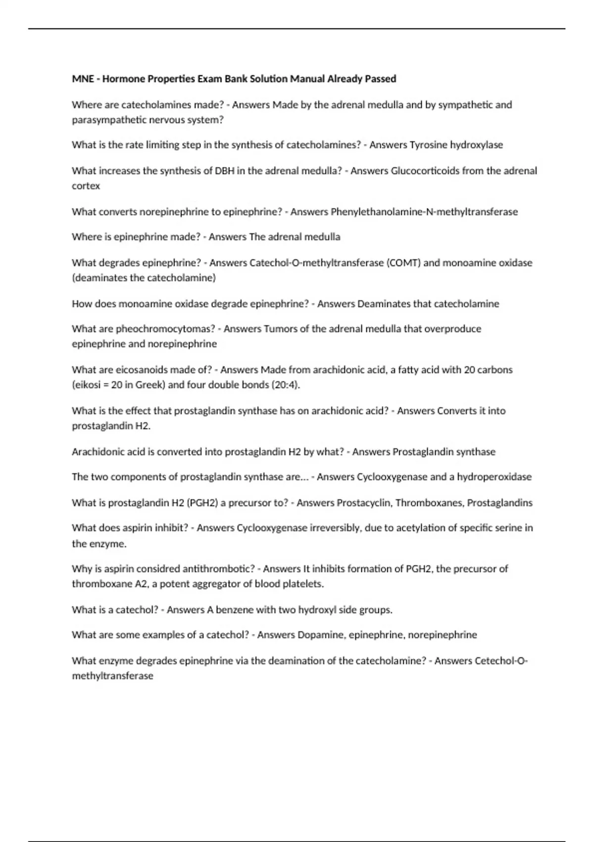 MNE - Hormone Properties Exam Bank Solution Manual Already Passed