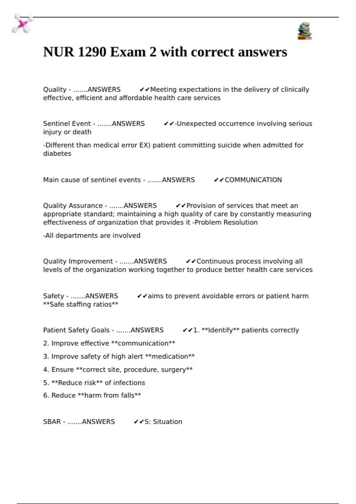 Safety - .......ANSWERS 🔷🖊✔✔aims to prevent avoidable errors or patient harm