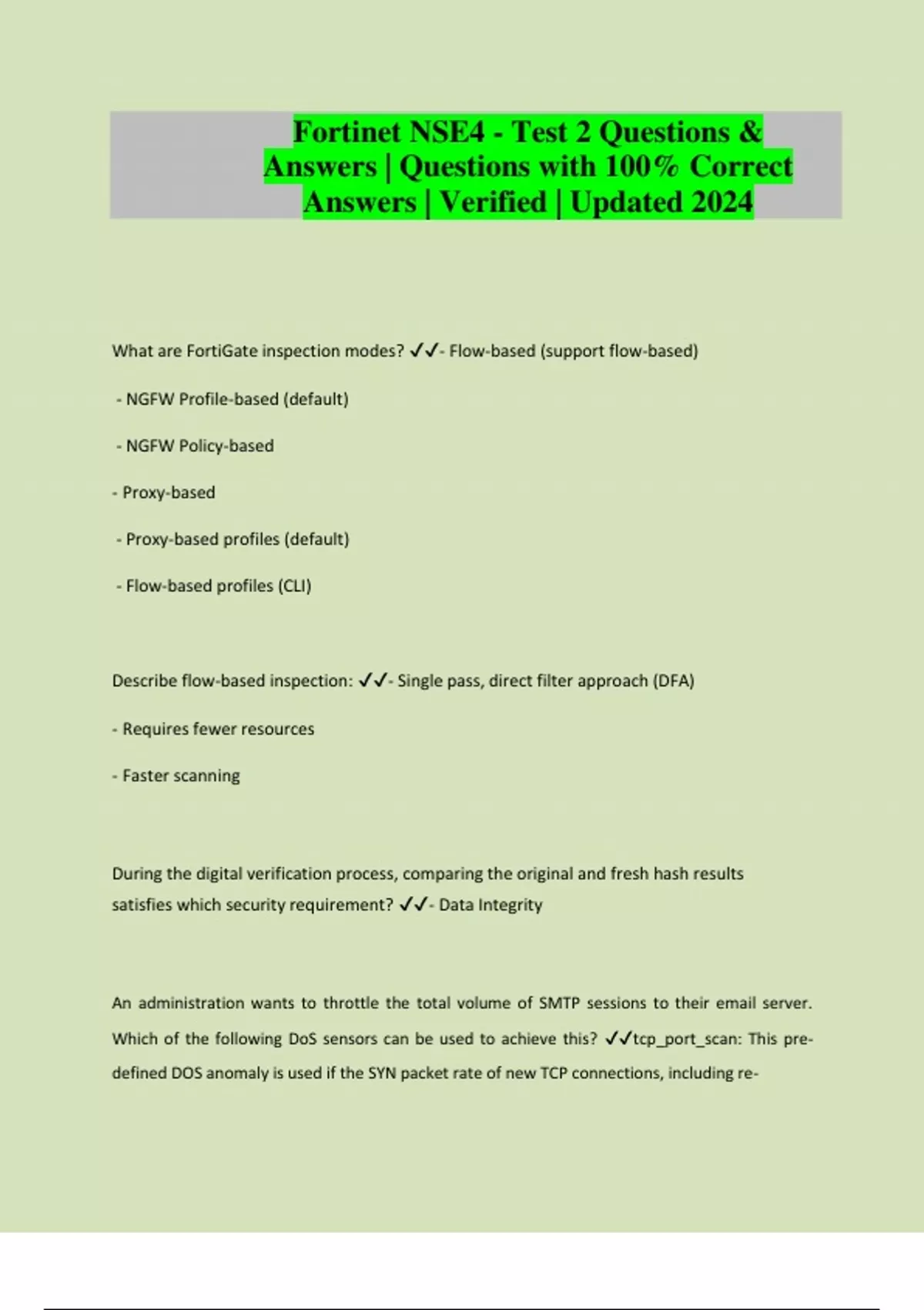 Fortinet NSE4 - Test 2 Questions & Answers | Questions with 100% Correct Answers | Verified | Updated 2024