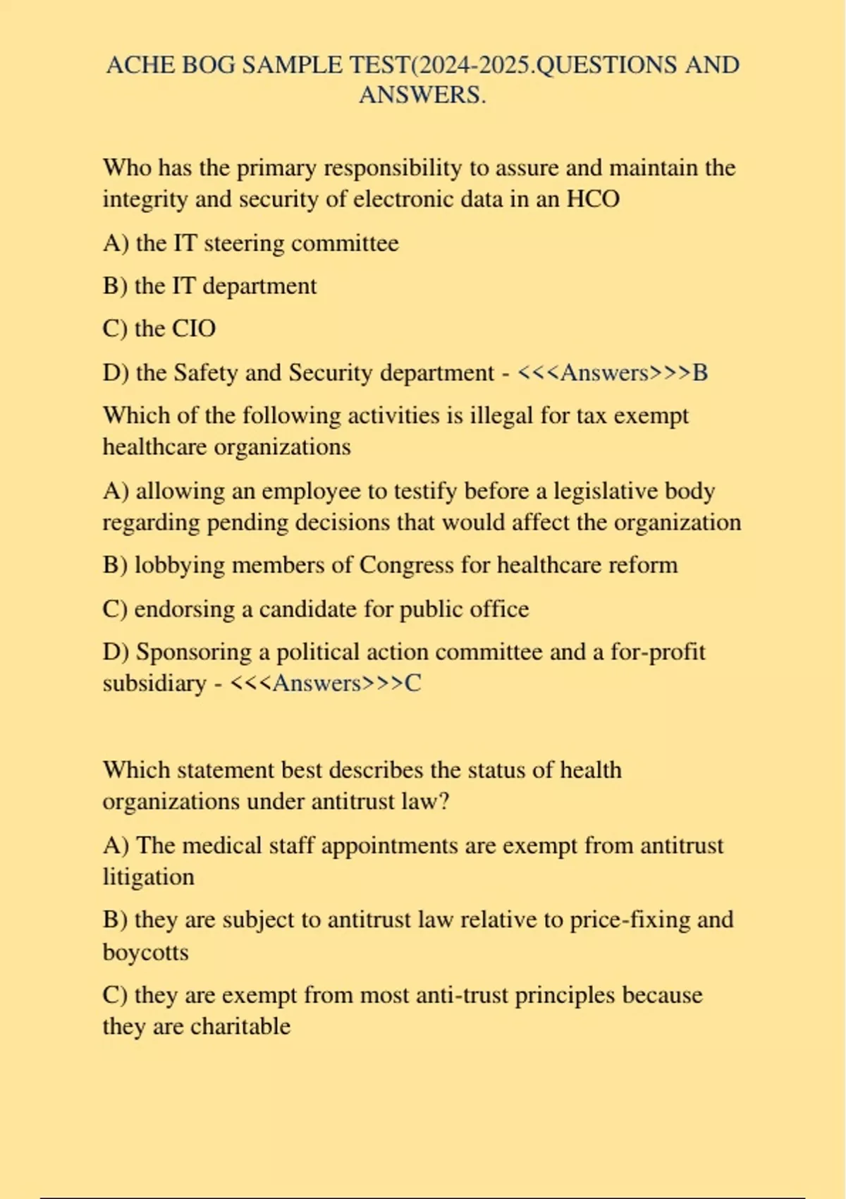 ACHE BOG SAMPLE TEST(.QUESTIONS AND ANSWERS