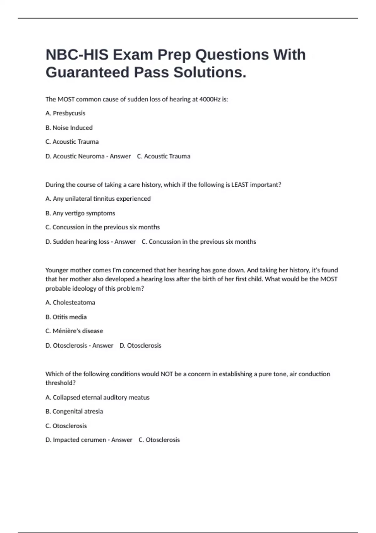 D. Acoustic Neuroma - Answer C. Acoustic Trauma
