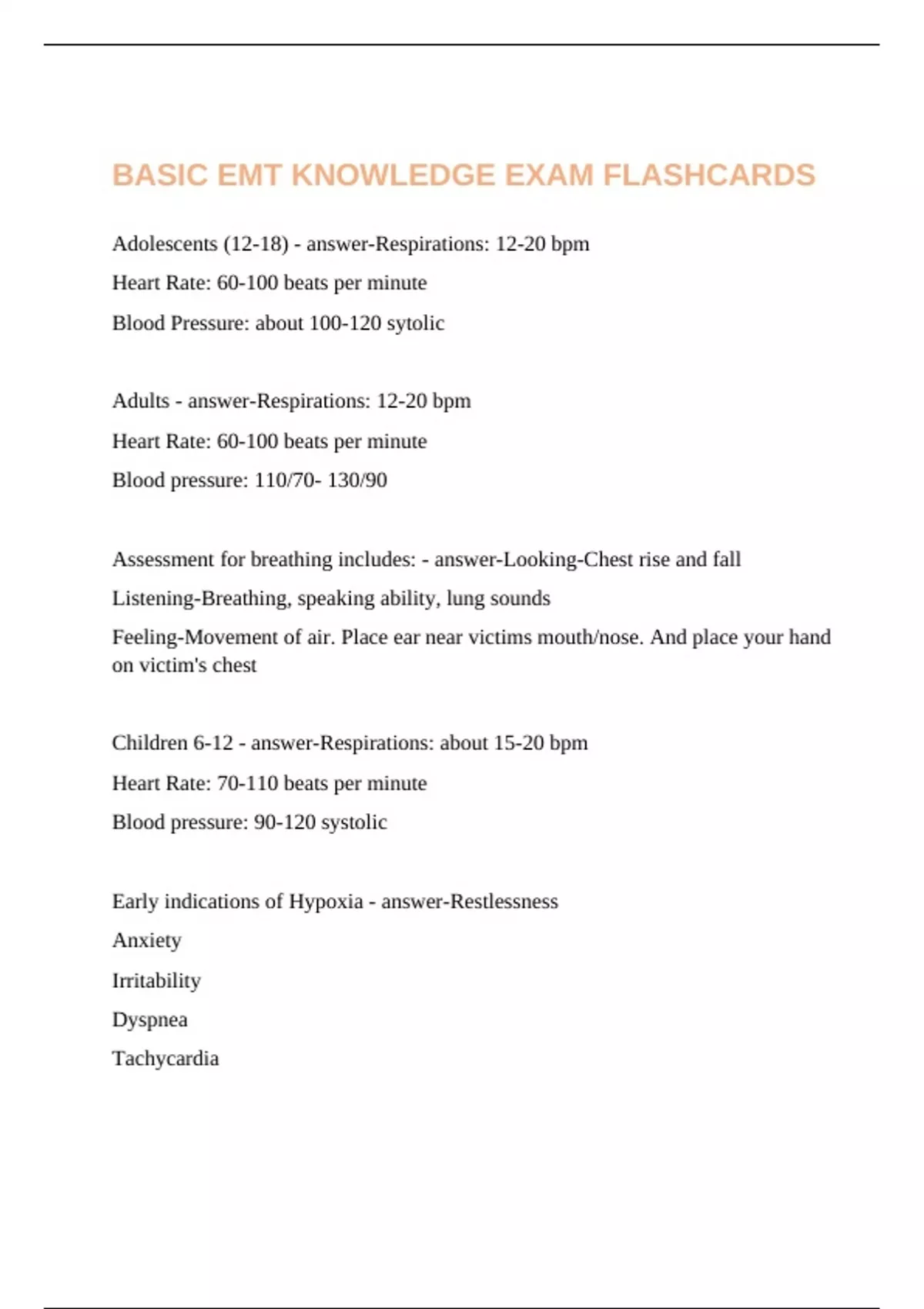 BASIC EMT KNOWLEDGE EXAM FLASHCARDS