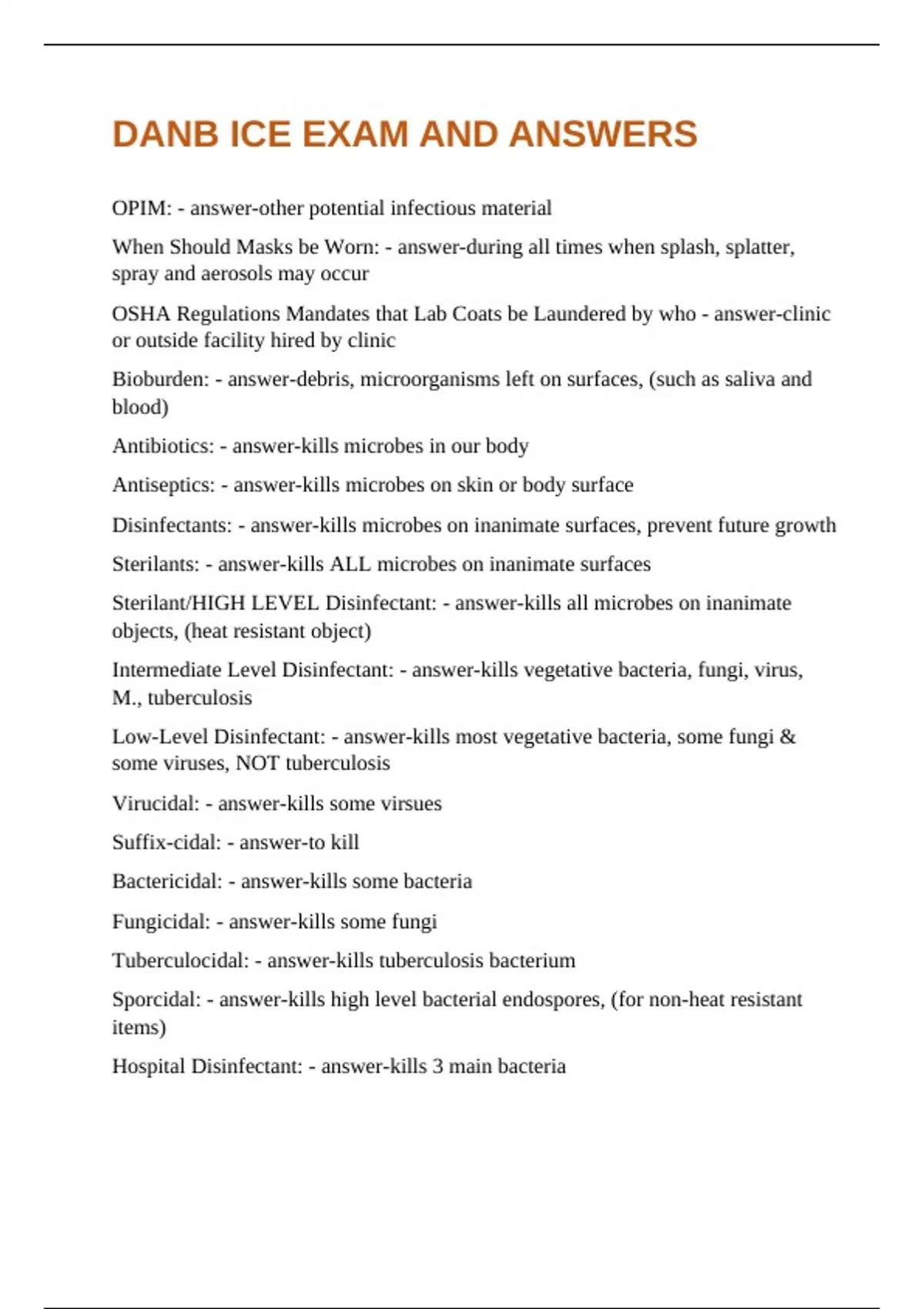 Sterilant/HIGH LEVEL Disinfectant: - answer-kills all microbes on inanimate