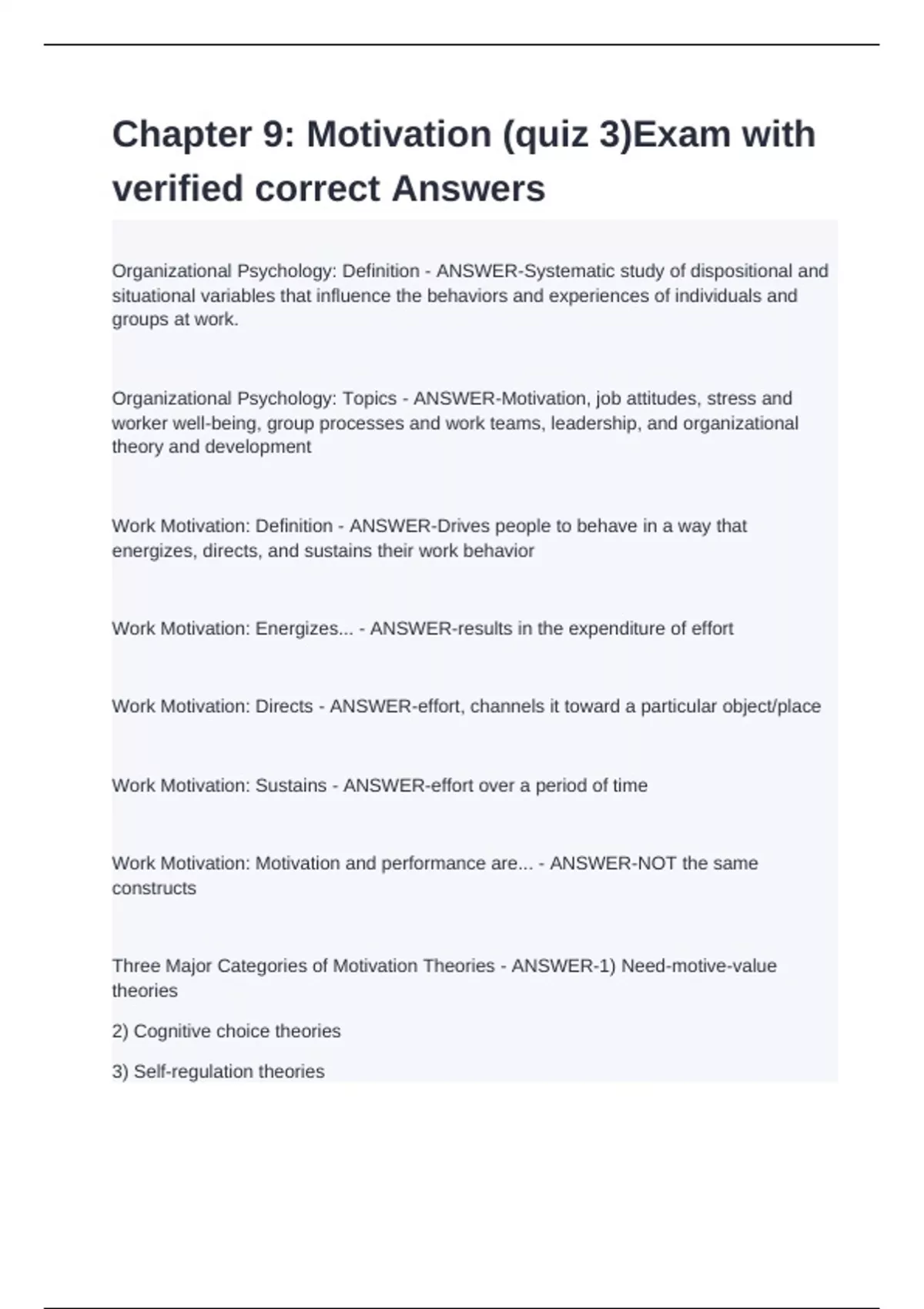 Work Motivation: Motivation and performance are... - ANSWER-NOT the same