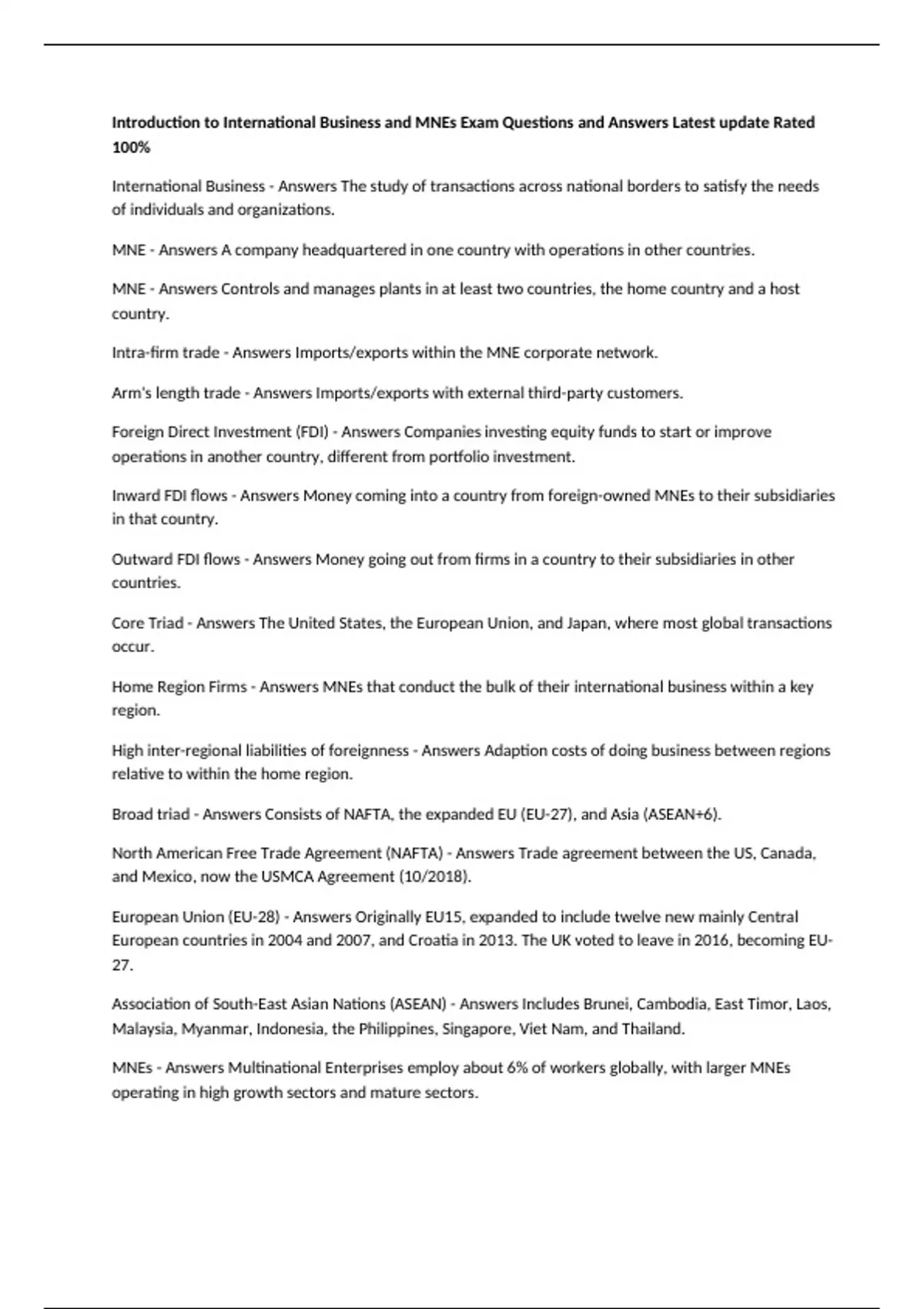 Intra-firm trade - Answers Imports/exports within the MNE corporate network.