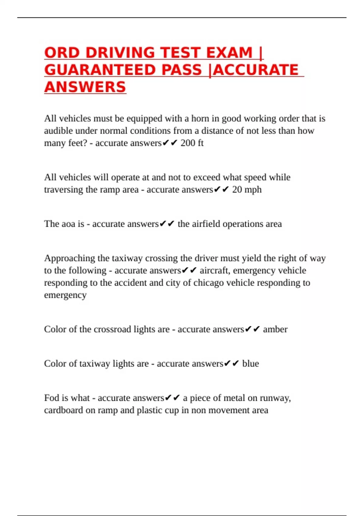 ORD DRIVING TEST EXAM |GUARANTEED PASS |ACCURATE ANSWERS
