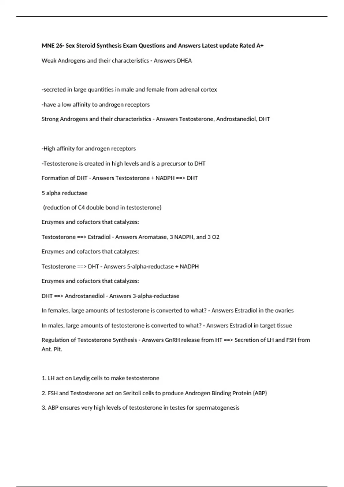 Strong Androgens and their characteristics - Answers Testosterone, Androstanediol, DHT