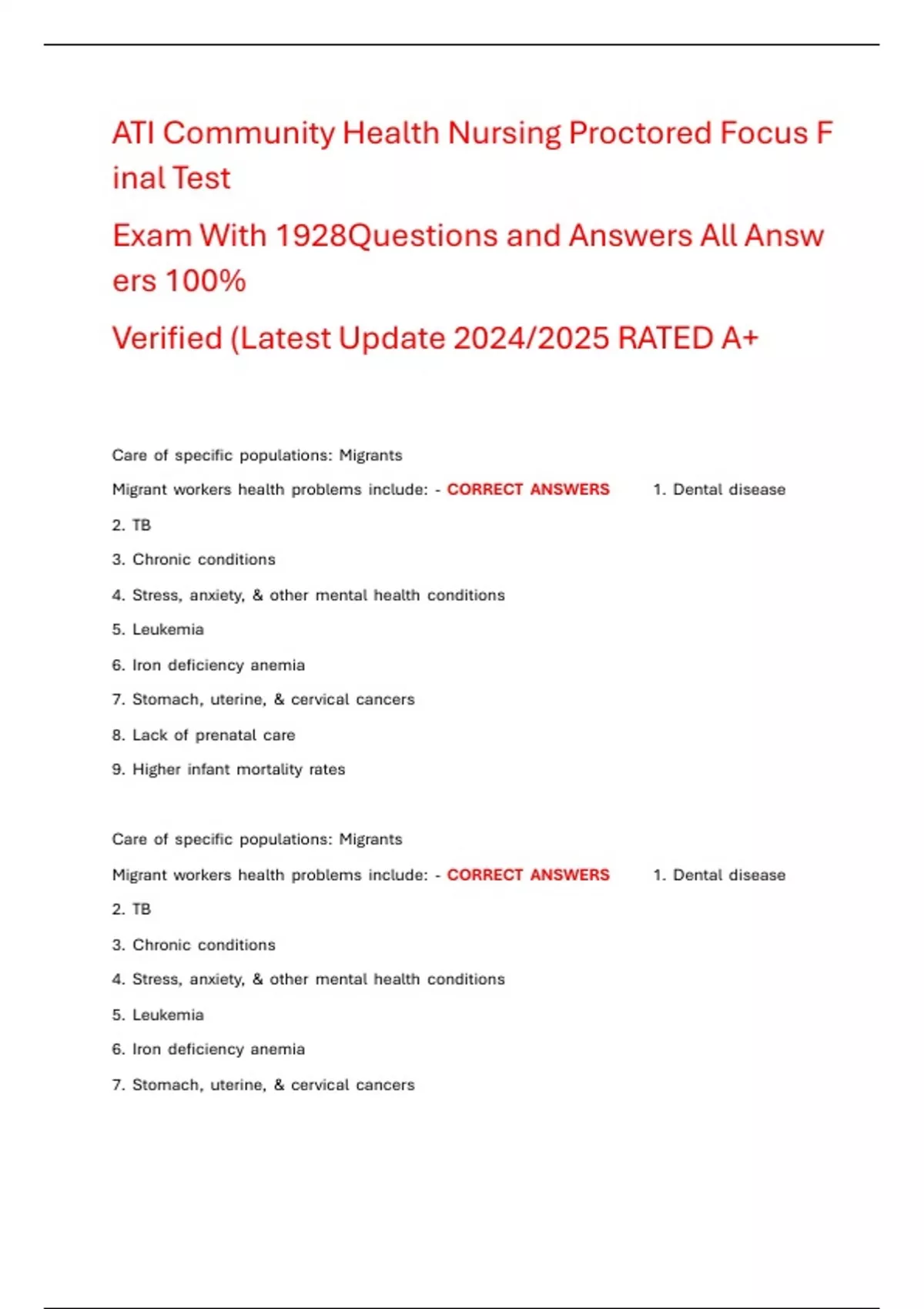PrimaryfdPreventionfdforfdRuralfdorfdMigrantfdHealthfdcare:fd-fdCORRECTfdANSWERSfdfdfdfdfdfd-
