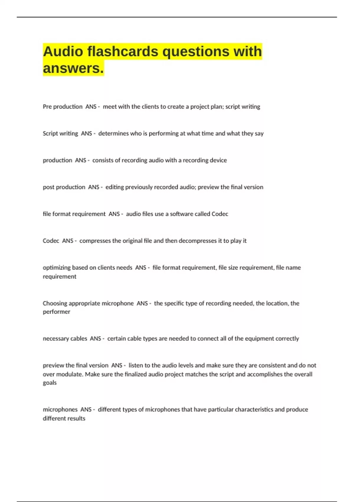 Audio flashcards questions with answers.