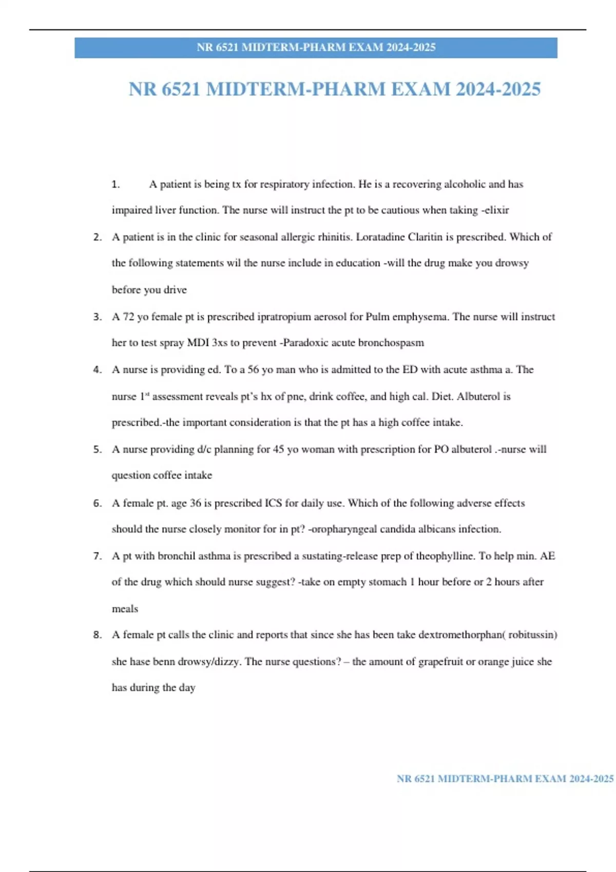 , NR 6521 MIDTERM-PHARM EXAM 2024-2025
