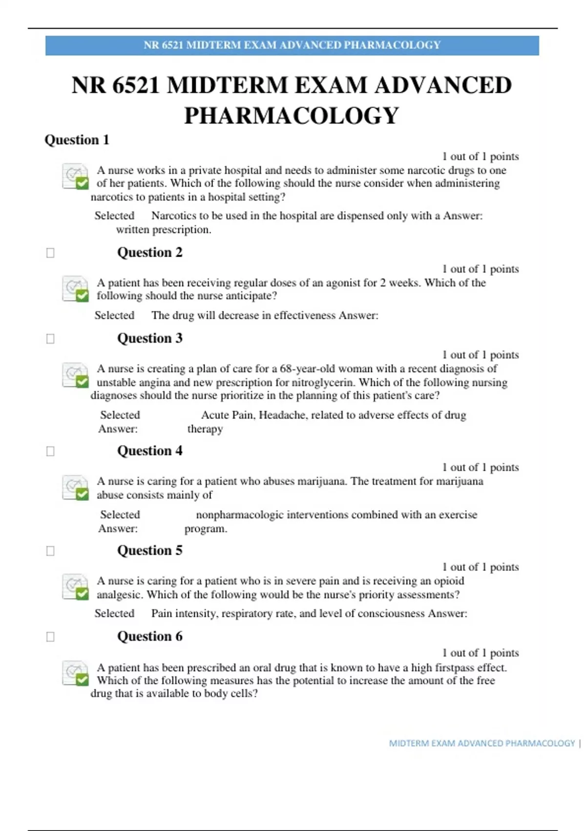 NR 6521 MIDTERM EXAM ADVANCED PHARMACOLOGY