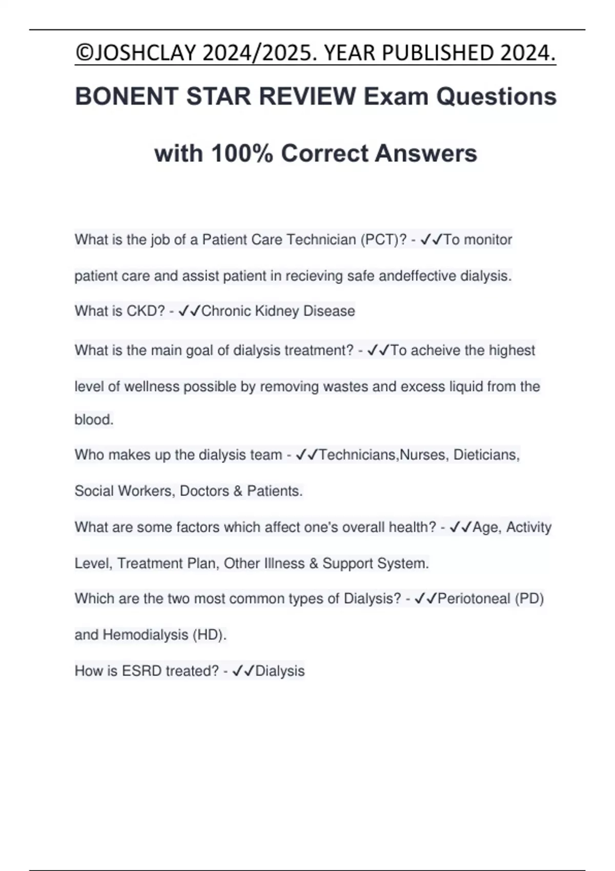 BONENT STAR REVIEW Exam Questions