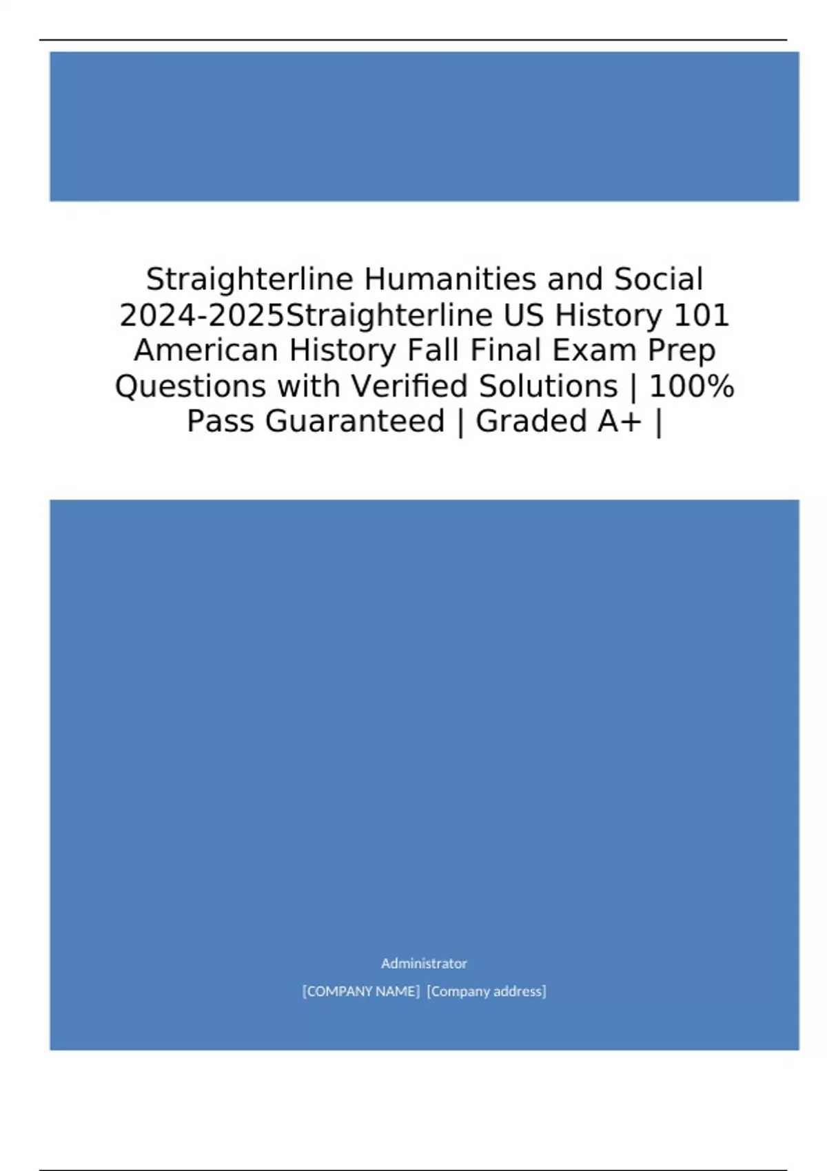 Straighterline Humanities and Social Straighterline US History 101 American History Fall Final Exam Prep Questions with Verified Solutions | 100% Pass Guaranteed | Graded A+ |