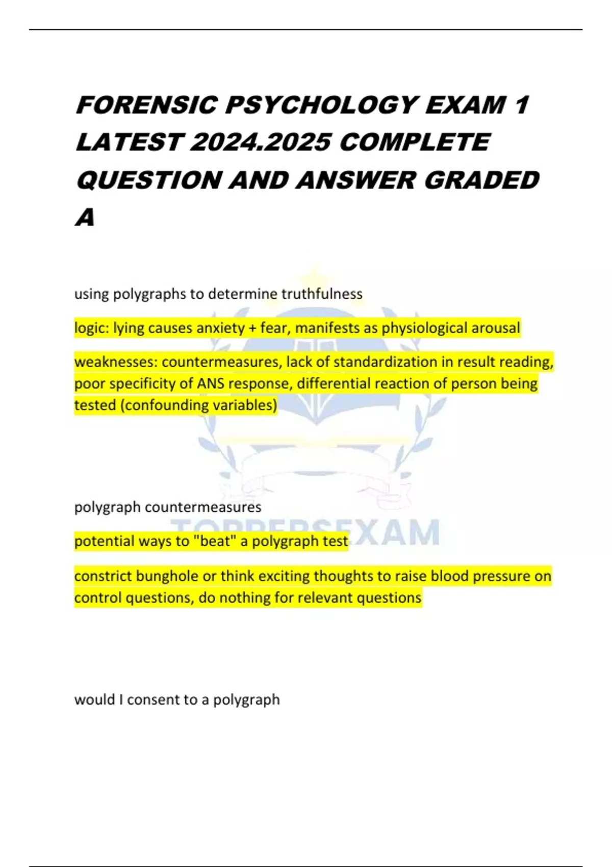 FORENSIC PSYCHOLOGY EXAM 1