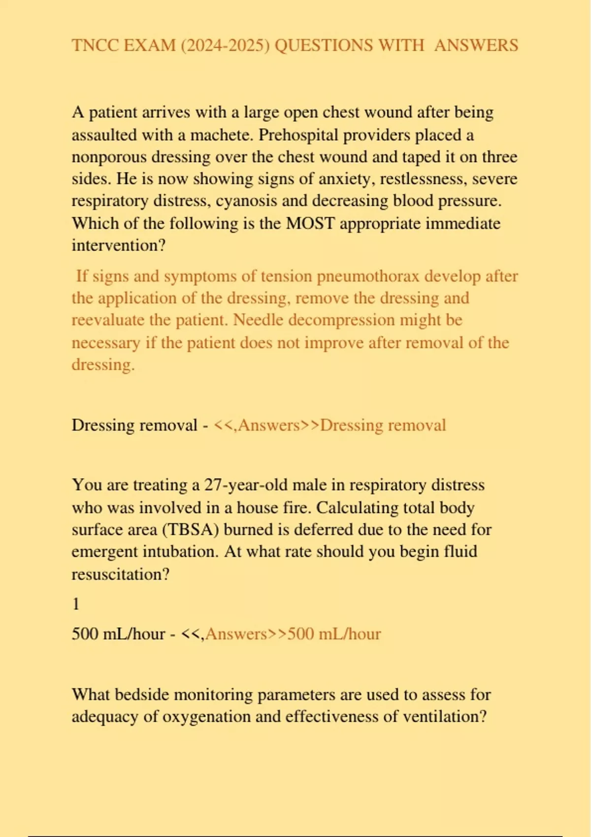 , TNCC EXAM (2024-2025) QUESTIONS WITH ANSWERS