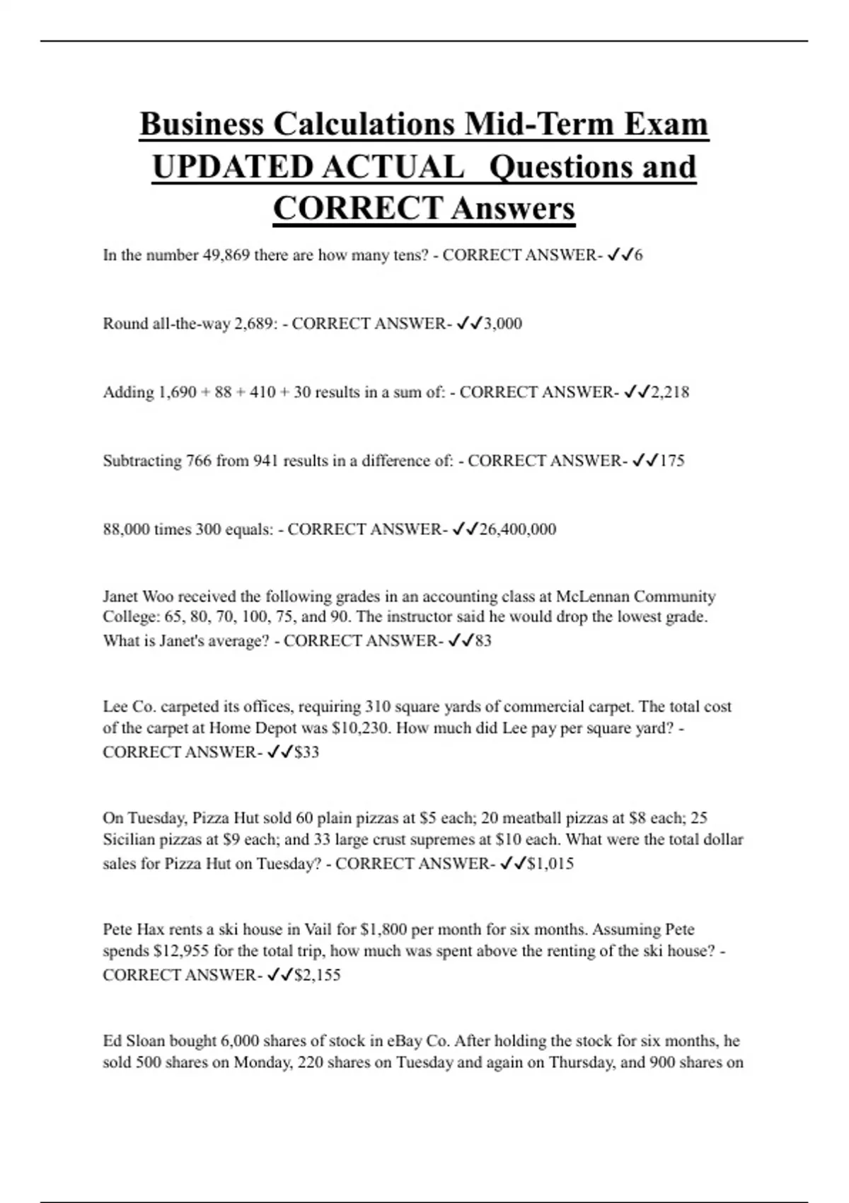 UPDATED ACTUAL Questions and