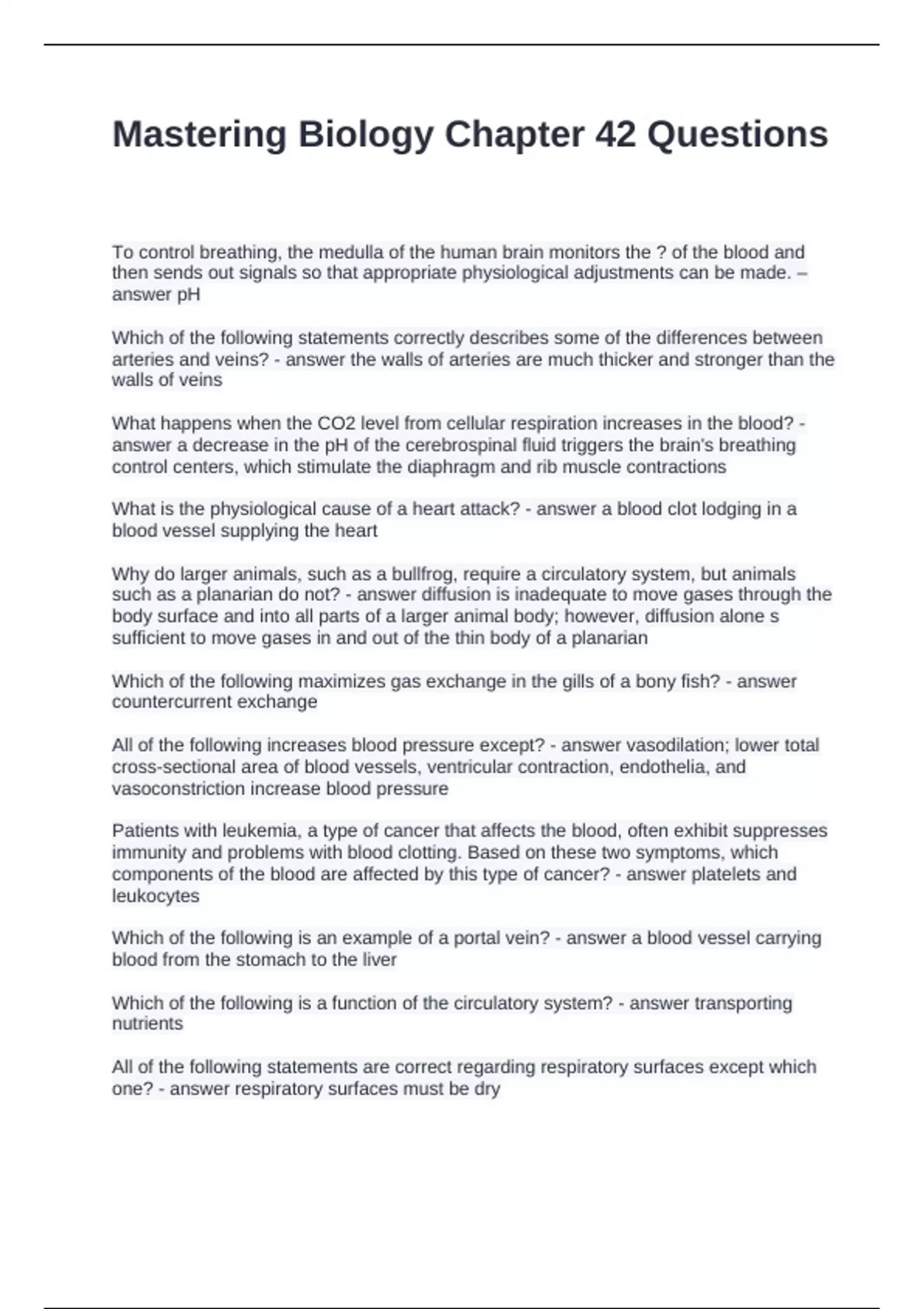 Mastering Biology Chapter 42 Questions and Answers Latest Updated 2024