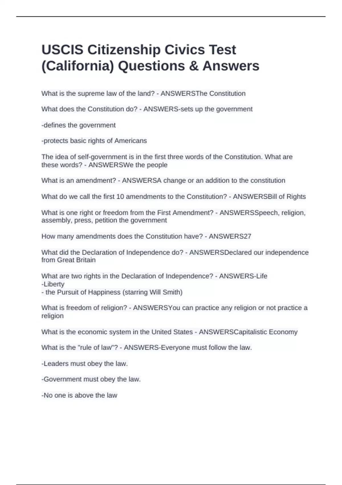 What is the supreme law of the land? - ANSWERSThe Constitution