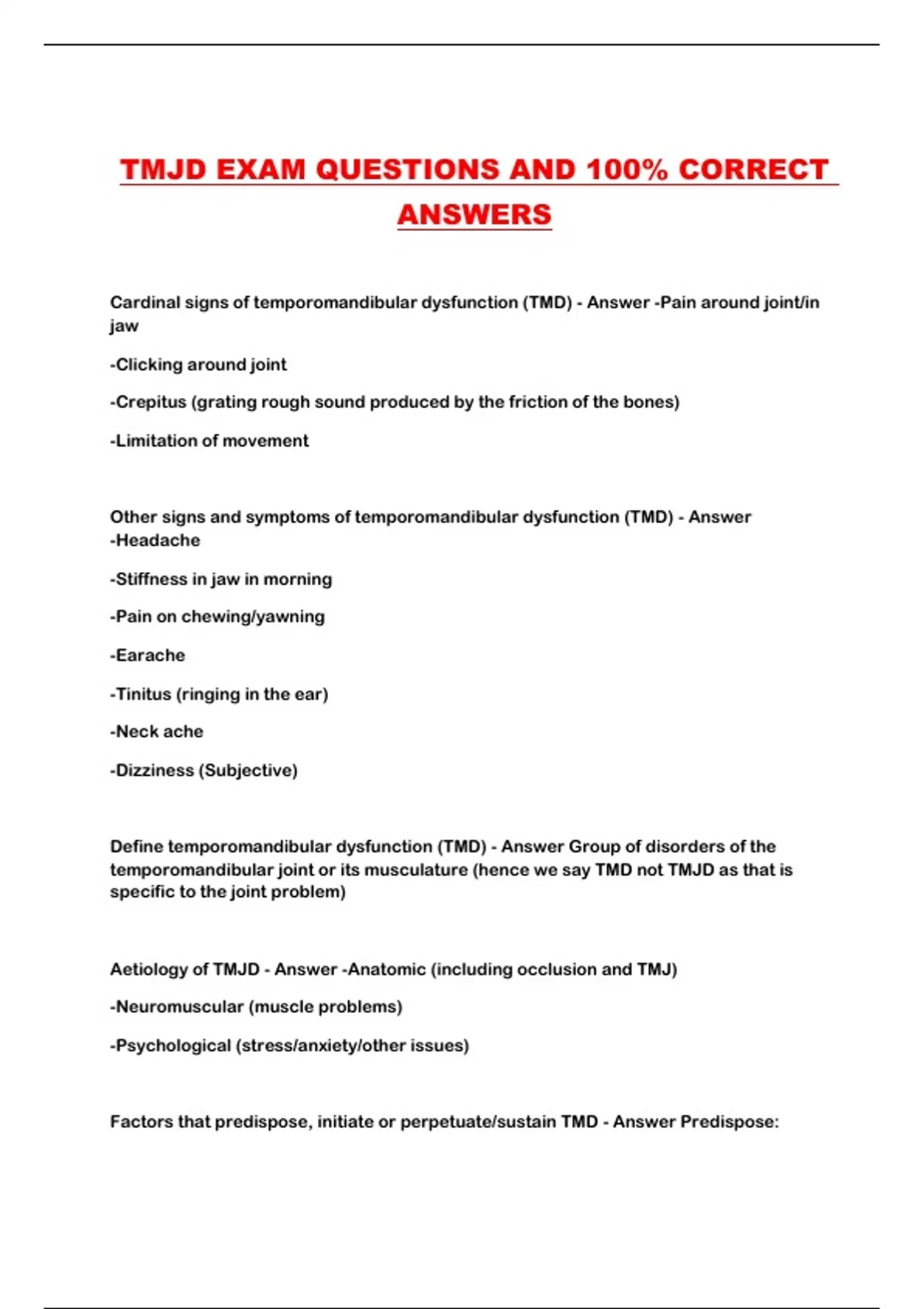 TMJD EXAM QUESTIONS AND 100% CORRECT