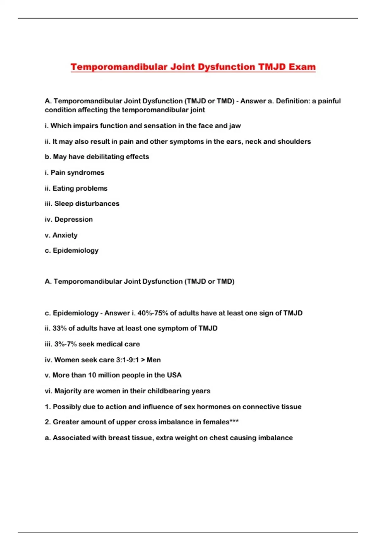c. Epidemiology - Answer i. 40%-75% of adults have at least one sign of TMJD