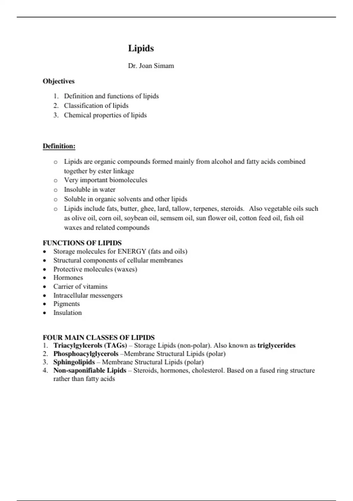 1. Triacylgylcerols (TAGs) – Storage Lipids (non-polar). Also known as triglycerides