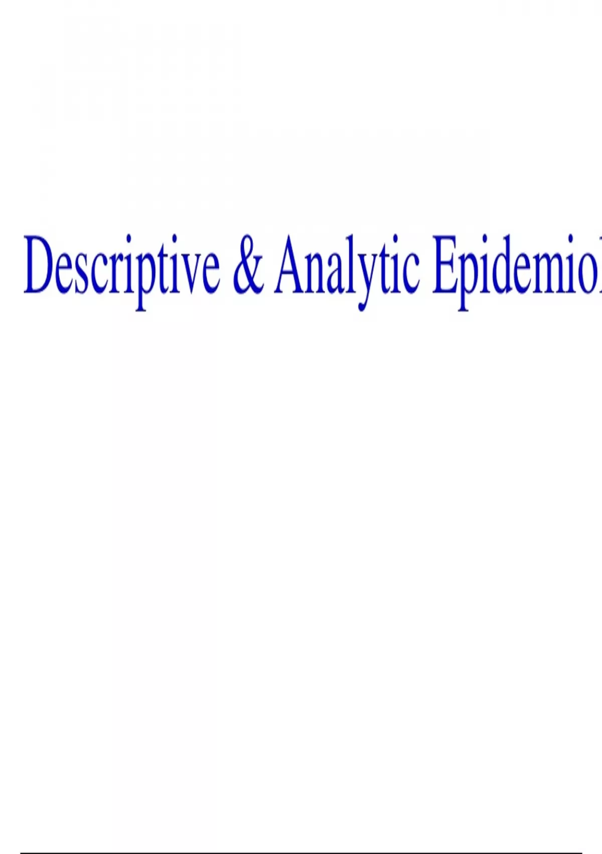 Descriptive & Analytic Epidemiology How we view the world….. • Pessimist: The glass is half empty. • Optimist: The glass is half full. • Epidemiologist: As compared to what? Descriptive epidemiology • Attempts to explain the reason for disease occurrence. • Examines the distribution of disease in populations • Knowledge of such distributions is essential to describe patterns of disease as well as to help identify risk factors • Examines the characteristics of person, place and time • Primarily Hypothesis generating The Person-Place-Time Model • Three main elements of descriptive epidemiology: • The model describes disease occurrence in terms of who is getting disease within a population (Person), where the cases are (Place) and when the cases occur(Time) • Asks: Who? Where? When? Person Time Place Person • Age • Gender • Marital status • Ethnicity/ race • Occupation • Education level • Socioeconomic factors • Stres