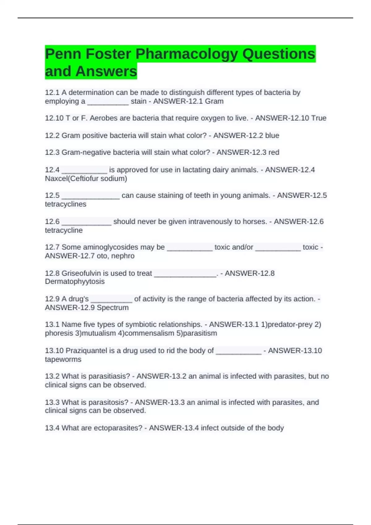 Penn Foster Pharmacology Questions