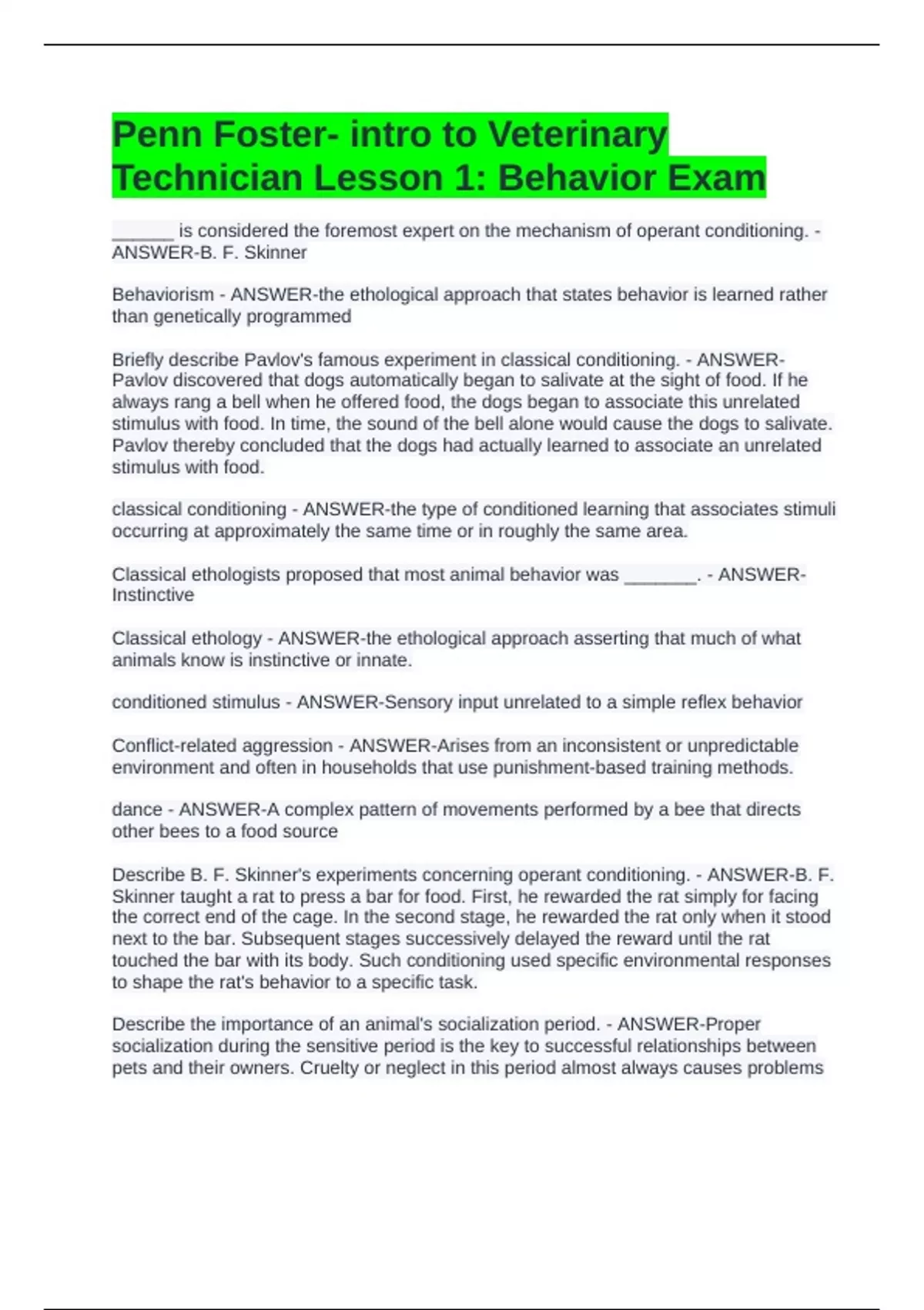 Penn Foster- intro to Veterinary
