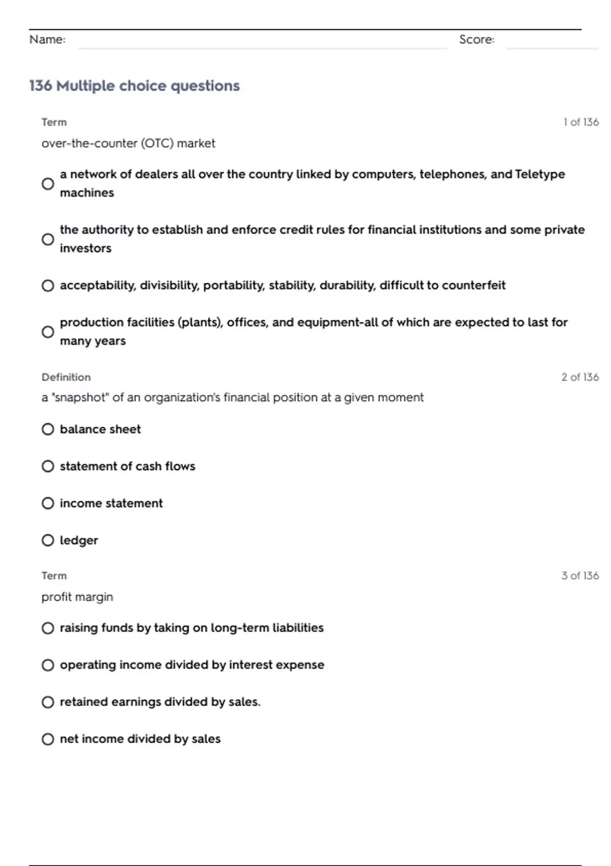136 Multiple choice questions