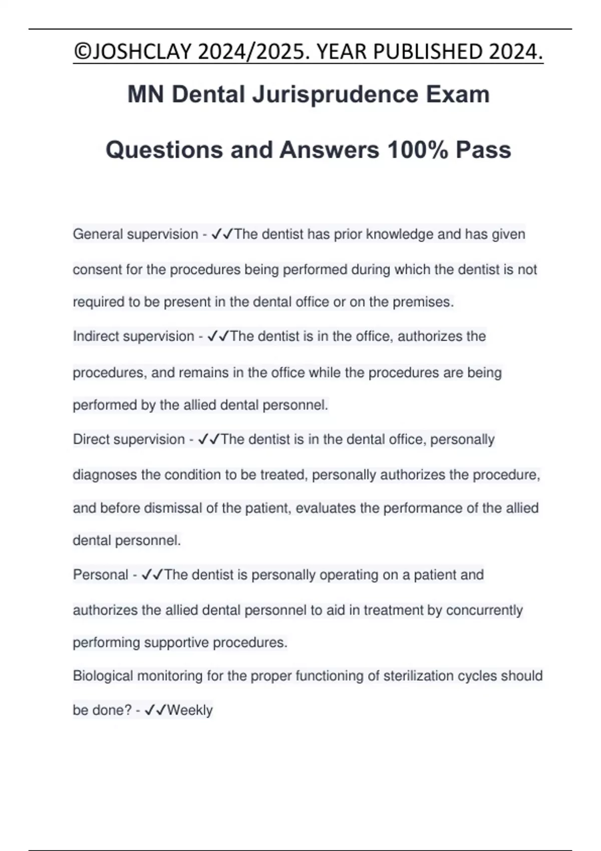 General supervision - ✔✔The dentist has prior knowledge and has given