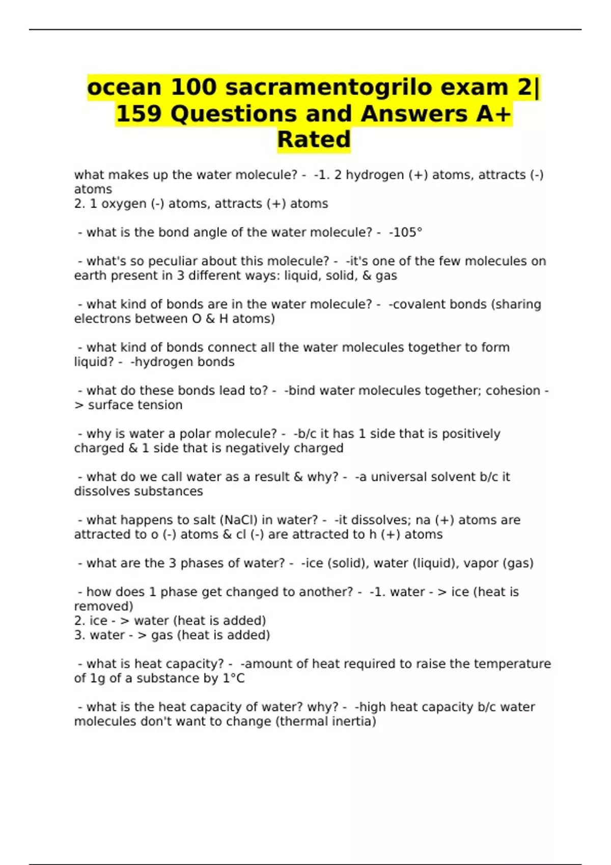 ocean 100 sacramentogrilo exam 2|159 Questions and Answers A+ Rated